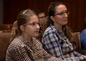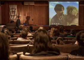 Levetített nekünk egy részletet a Gus Pike visszatér című epizódból. Először azt a változatot mutatta meg, amit ő kapott, ahol nem volt semmilyen zene a háttérben. Elmagyarázta, hogy a hosszabb jelenetsorban hol és mire kell neki, mint zeneszerzőnek figyelnie. Ha párbeszéd van, a zenének el kell halkulnia. Ha Gus rádöbben valamire, a zene erőteljesebb. Gus és édesanyja egymásra találásakor egy érzelmesebb jelenetben megint más zenét kellett használnia. Ráadásul itt a két szereplőre jellemző zenei motívumokat keverte. Majd bejátszotta nekünk a jelenetsort a már kész zenei aláfestéssel. Nagyon érdekes volt!