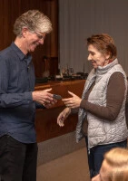 Végül a közel 2 órás prezentáció + kérdések részt a John által ajándékba hozott három zenei CD kisorsolásával zártuk le. A három CD-nek három boldog rajongó lett a tulajdonosa.